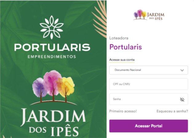 4. Após selecionar a opção de documento e adicionar o seu respectivo documento, coloque a senha que você acabou de criar e clique em “Acessar Portal”.